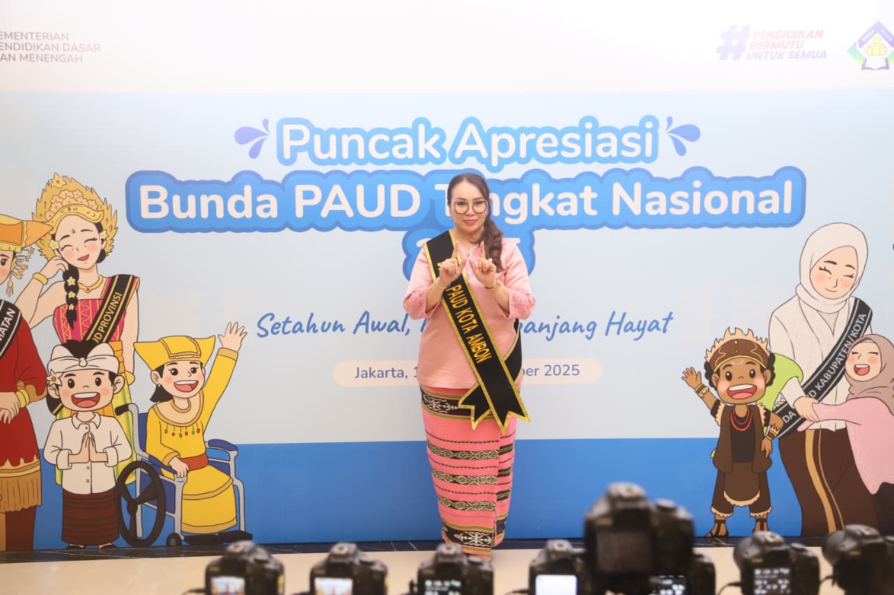 AMBON,MG.com – Bunda Pendidikan Anak Usia Dini (PAUD) Kota Ambon, Lisa Wattimena, menghadiri Acara Puncak Apresiasi Bunda PAUD Tingkat Nasional Tahun 2025 yang digelar di Jakarta.
