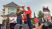 Wakili Kapolda Kabid Humas Polda Maluku Serahkan Piala Juara Pertama Popmal untuk Kota Ambon